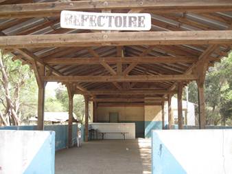 omgeving, losse gebouwen, zandwegen ertussen. Een refectorium zonder tafels en